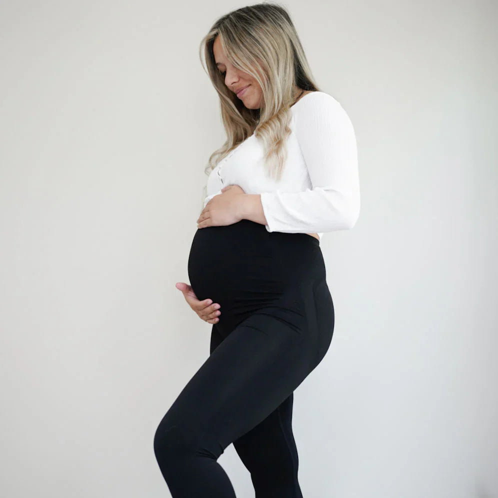 Unsere Leggings unterstützt dein Babygewicht und entlastet sanft deinen unteren Rücken.